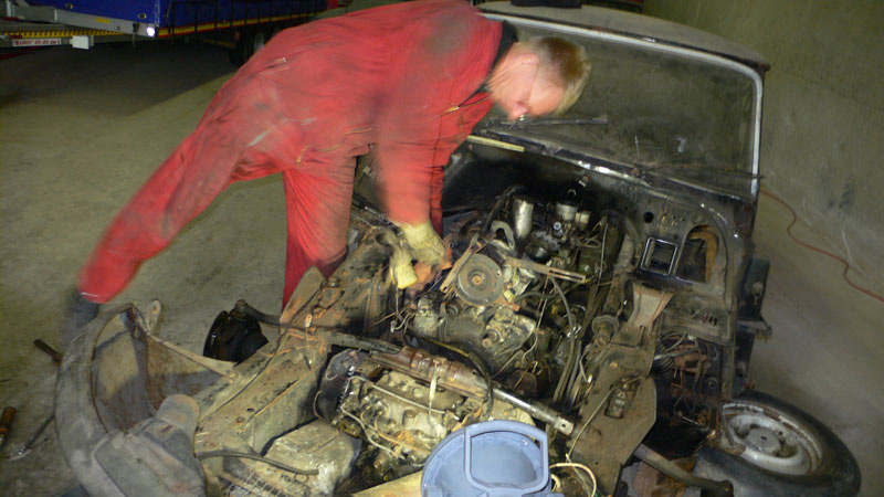 Um einen ersten Schritt zu machen, trafen sich Anfang September Ulrich Knaack, Martin Kraut und Markus Schwartau für vier Tage, um die beiden Wagen zu begutachten, einen zu schlachten und auch weitere Aufräumarbeiten im Bunker zu erledigen. Im Laufe der Jahre hatte sich einiges an Arbeit angehäuft.