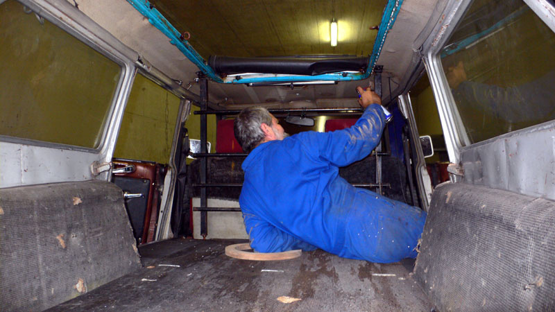 Ein Kamerawagen blieb wie er ist als Vorlage, der zweite wurde geschlachtet und alles ausgebaut, was an ihm besonders war. Mit diesen Teilen werden wir nun einen fahrbereiten Kamerawagen aufbauen, der auf diversen Oltimerveranstaltungen bis hin zu den 2000km von Deutschland gezeigt werden oder mitfahren kann.