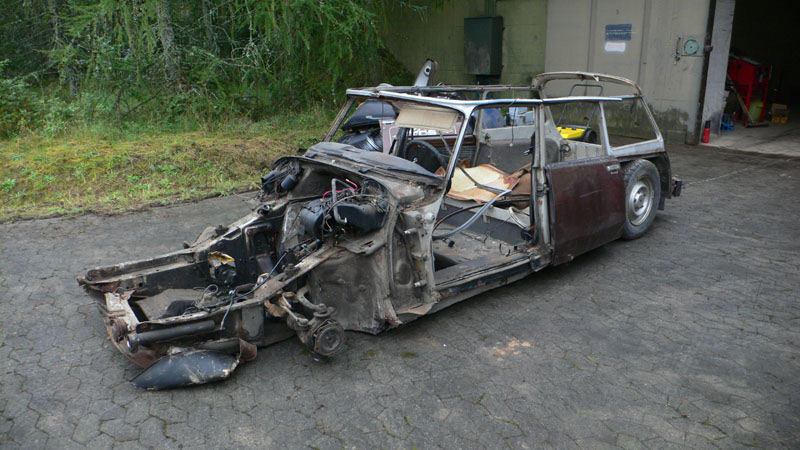 Wir hatten die Hoffnung, daß zumindest ein Chassis erhaltenswert sein würde, aber schon nach kurzer Untersuchung beider Break war das Ergebnis enttäuschend. Schon zu Lebzeiten wurden an den Dingern ordentlich rumgeschweißt, natürlich kam es nur darauf an den nächsten HU zu überstehen.
