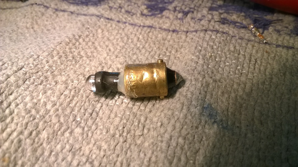 hier ein selbstgebauter "Prototyp", bestehend aus einem BA-Sockel (Glaskolben entfernt), einer LED aus einer Gartensteckleuchte und einem zwischengeschalteten 1kΩ-Widerstand (befindet sich unten im Sockel).