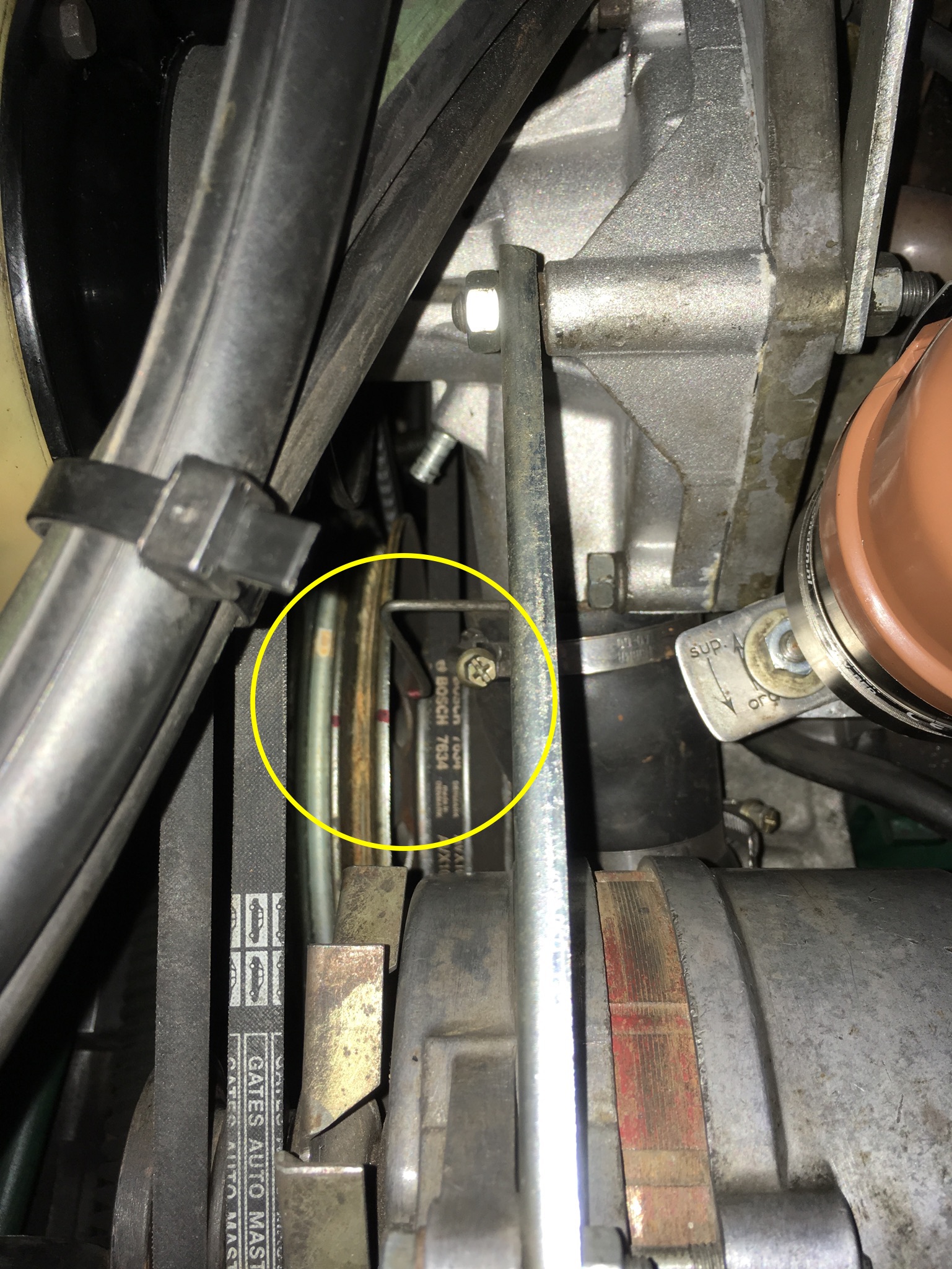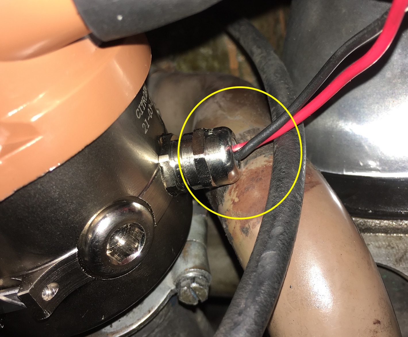 Was mich auch stört: Gefühlt steht der Zündverteiler schon zu sehr gegen den Uhrzeigersinn, denn die Klammer oben liese sich nicht mehr öffnen ([attachment 11107 Bild2.JPG]) und der Ausgang der beiden Niedervoltkabel zur Zündspule berührt bereits den Wasserschlauch ([attachment 11108 Bild3.JPG])