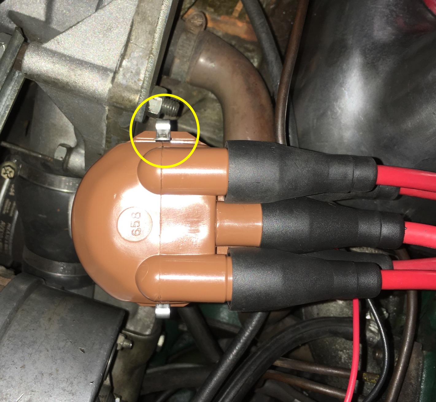 Motor springt dann (leider) nicht an. Danach die Zündungsverteiler langsam gegen den Uhrzeiger verdreht, um Frühzündung zu erreichen.