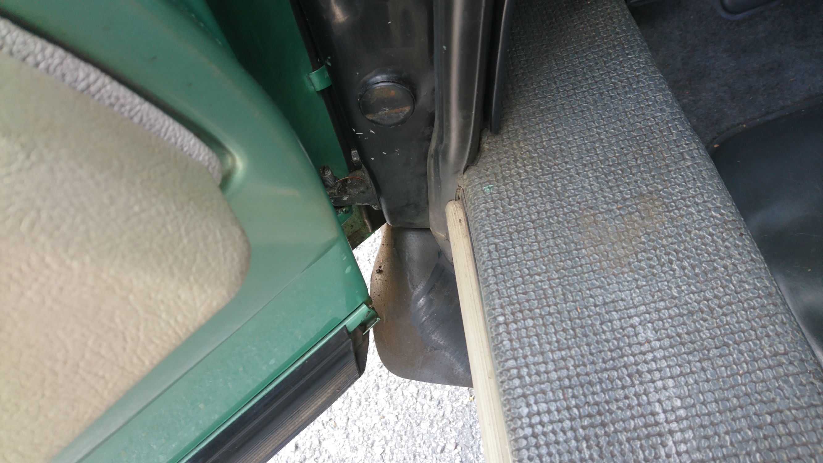 meine Bilder vom 18.8.19 täuschen etwas in der Ansicht . Der Gummilappen ist waagerecht montiert und wird auch noch unter der A-Säule befestigt .Die evtl. Schwellerverkleidung wird erst danach montiert . Ich glaube das die unterschiedliche Form der Gummis keine große Rolle spielt und beide ihren Zweck erfüllen .