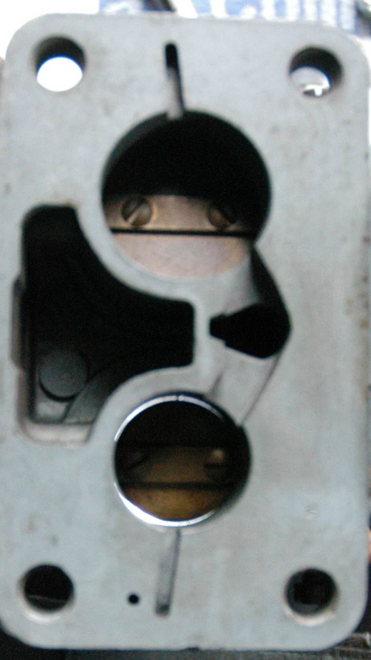 Auch wenn der Leerlaufweg der ersten Sufe nicht einstellbar ist, muss die untere Bypassbohrung der drei seitlichen Bohrungen auf jeden Fall durch die Drosselklappenkante freigegeben sein. Damit das gewährleistet ist, gibt´s die Maßgabe, nicht an der werksmäßig eingestellten Anschlagschraube der ersten Stufe zu drehen. Die tatsächliche Klappenöffnung ist minimal!
