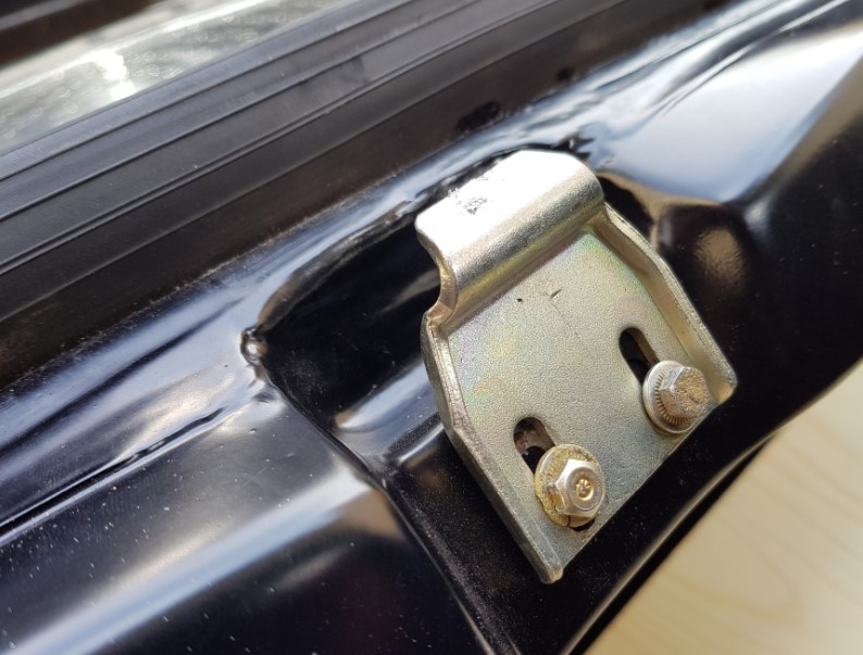 die Gewindeplatte, im Heckblech liegt in der Regel in einem darin verschweißten Käfig.