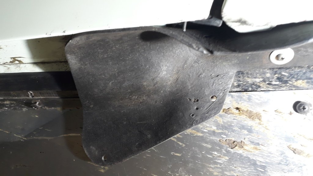 unter der vorderen Tür im Bereich der A-Säule befindet sich ein Spritzlappen.