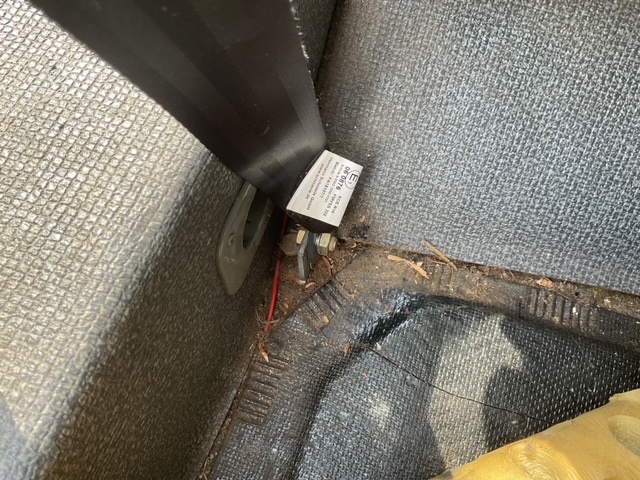Die Befestigung der Rolle auf dem Schweller scheint mir nicht sehr haltbar. Wurde der Punkt, an dem die Schraube eingesetzt ist, irgendwie verstärkt? Ansonsten reisst die Rolle da bei einem Unfall einfach raus. Ich habe in meiner 21er und der ID die Rolle an den B-Säulen befestigt, und zwar, indem ich oberhalb der auf dem Bild zu sehenden Kunststoffabdeckung des Fusses der Säule ein Loch durch die ganze Säule gebohrt und ein Stück Stahlrohr 10mm Innendurchmesser, 2mm Wandstärke aussen und innen mit der Säule verschweisst habe. Die Rolle habe ich dann mit von aussen durch die Säule gesteckten M10 10.9 Schrauben befestigt. Den unteren Befestigungspunkt habe ich an der gleichen Stelle wie Acadrian belassen, da dieser Bereich bei der 21er aber ohnehin weggerostet war und erneuert werden musste, habe ich hier eine neue handelsübliche Gurtbefestigungsplatten eingeschweisst.