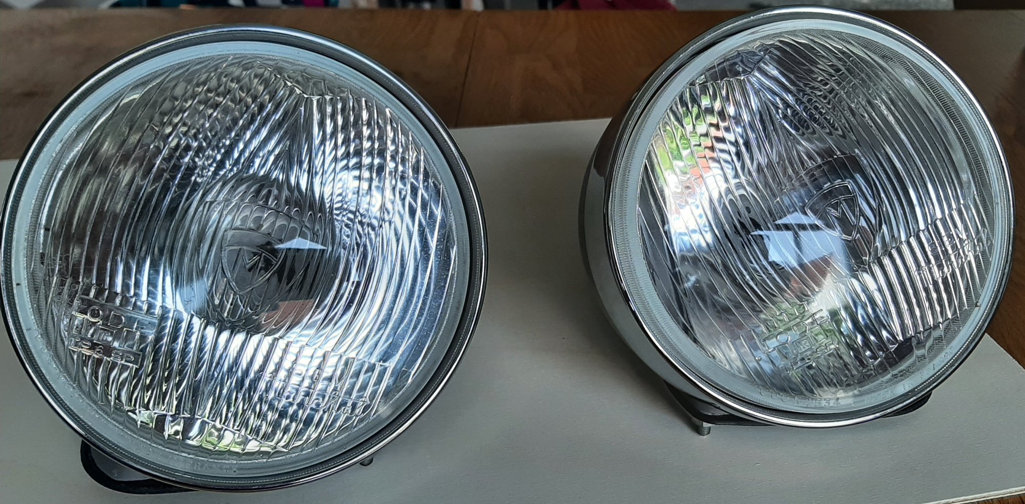 - als Fernscheinwerfer (gebündelt), ohne Warzen. Der Chromring ist dann auch breiter.