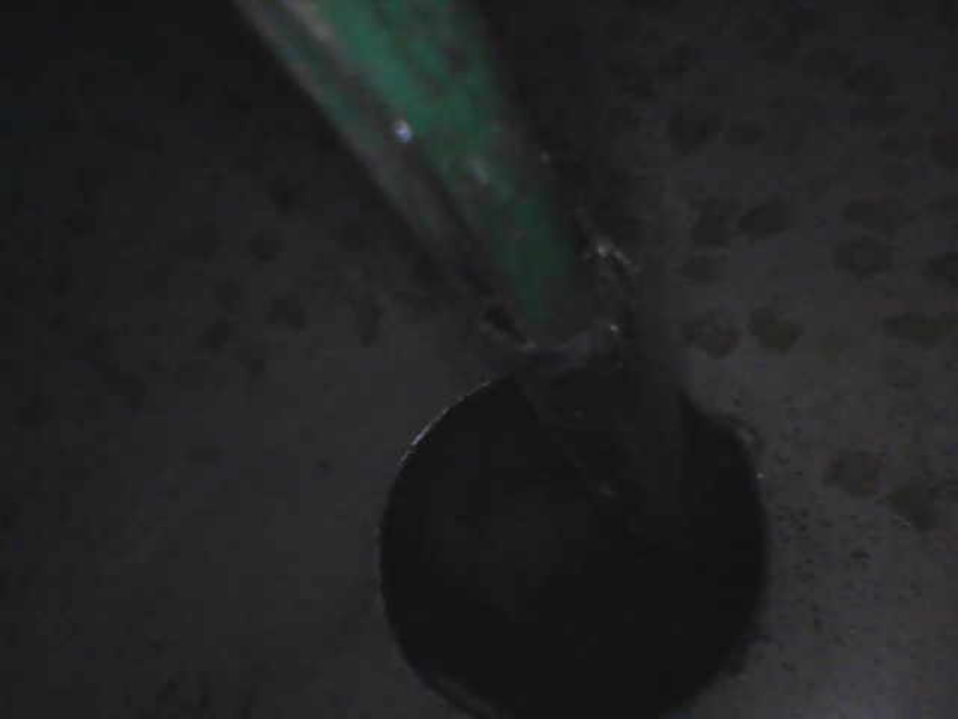 Die Kabel von den Türschaltern treten aus der inneren Wand der A-Säule aus und verlaufen annähernd waagerecht zum Türschalter. Hier der Blick durch die Bohrung, in der die Türschalter sitzen, nach innen.