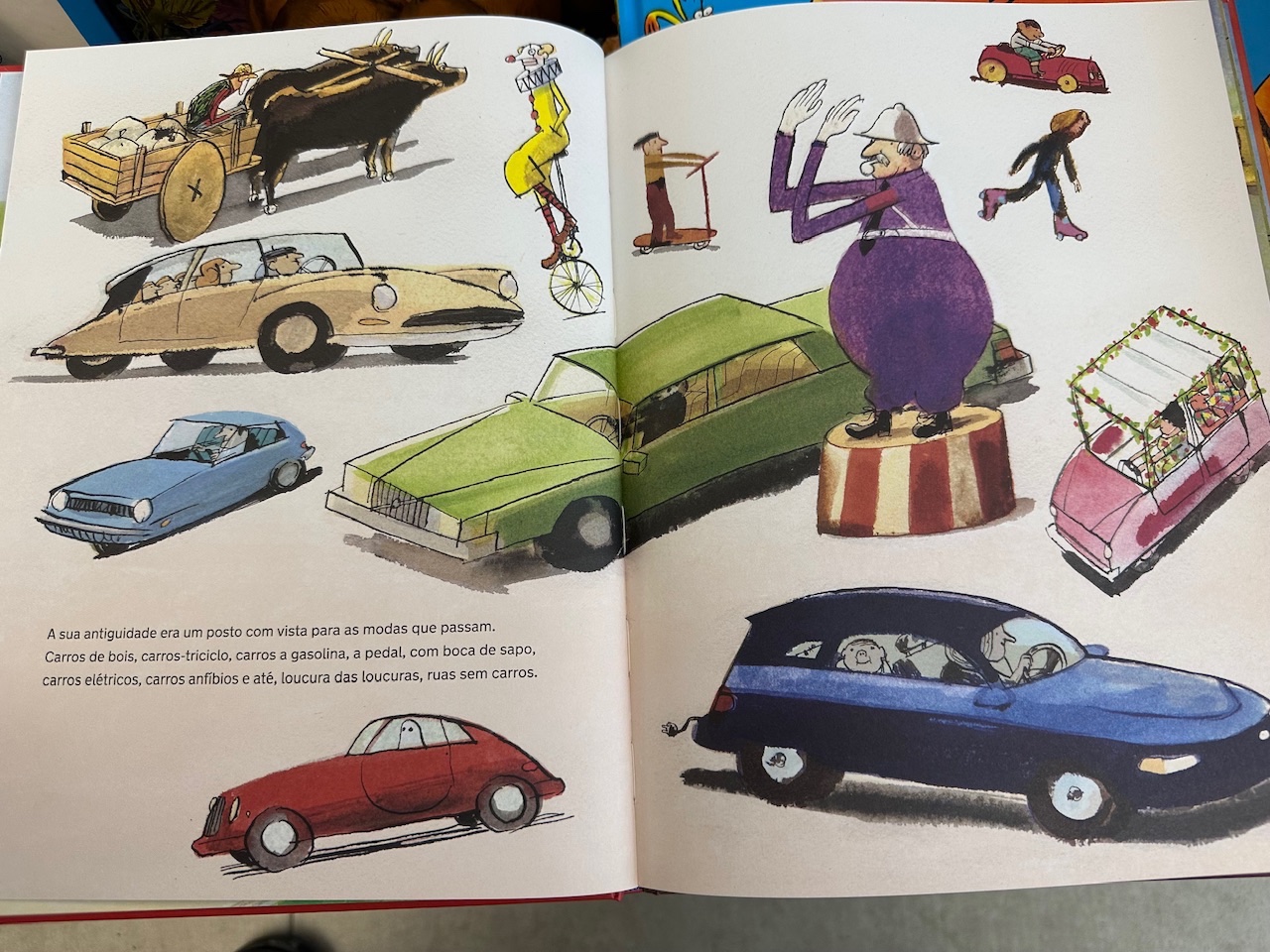 PS: …übersetzt: Ochsenkarren, Dreiradkarren, benzinbetriebene Autos, pedalbetriebene Autos, Froschmaulautos, Elektroautos, Amphibienautos und sogar, das Verrückteste von allem, Straßen ohne Autos.