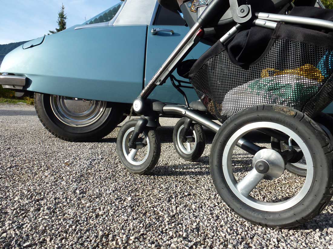 bei unserer heutigen herbstausfahrt hatten wir immerhin 5 stk. 1-speichenräder an bord. 4 davon ließen sich per knopfdruck abmontieren und so verschwand das untegüm im bildvordergrund spielend im kofferraum, bin immer wieder ob des fassungsvermögens erstaunt.