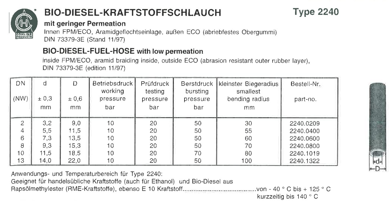 hier findet sich jede Menge unterschiedlicher Schläuche, wovon lediglich einer für Biodiesel geeignet ist. Eine weitere Unterscheidung hinsichtlich E5, E10 etc. kann ich nicht erkennen.