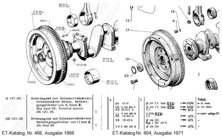 Wenn ich mir die Schwungscheiben der Lang- und Kurzhuber in den ET-Katalogen anschaue, habe ich Zweifel, ob die "alte" Scheibe wirklich fast 3x soviel wiegt wie die "neue".