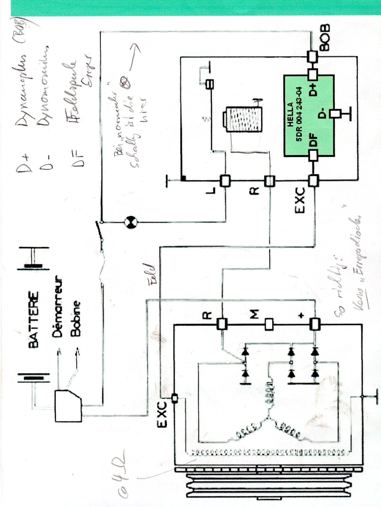 EXC (Feldspule an der LiMa): Motor aus 10,8V, im Leerlauf pulsiert die Spannug stark im Takt der LKL, bei höherer Drehzahl ca. 2,5V ohne Licht.