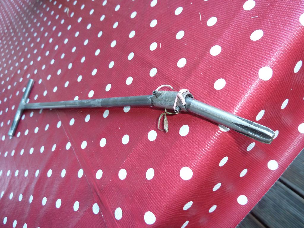 Sieht für mich aus wie ein großer fetter Kreuzsschlitz mit Kardangelenk... Vielleicht kannst Du auch ein paar detaillierte Fotos machen und das Werzeug bemaßen, dann kann man sicher was passendes zusammenstellen, oder?