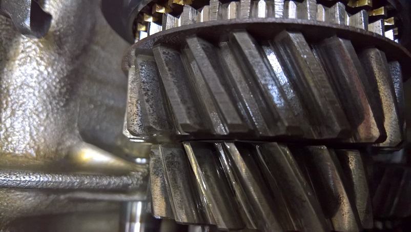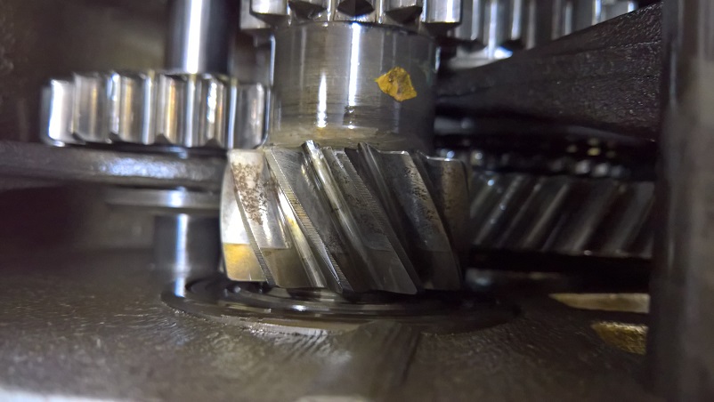 Die Zahnräder der oberen Welle sind zwar alle heile, weisen aber schon ein paar Laufspuren auf: