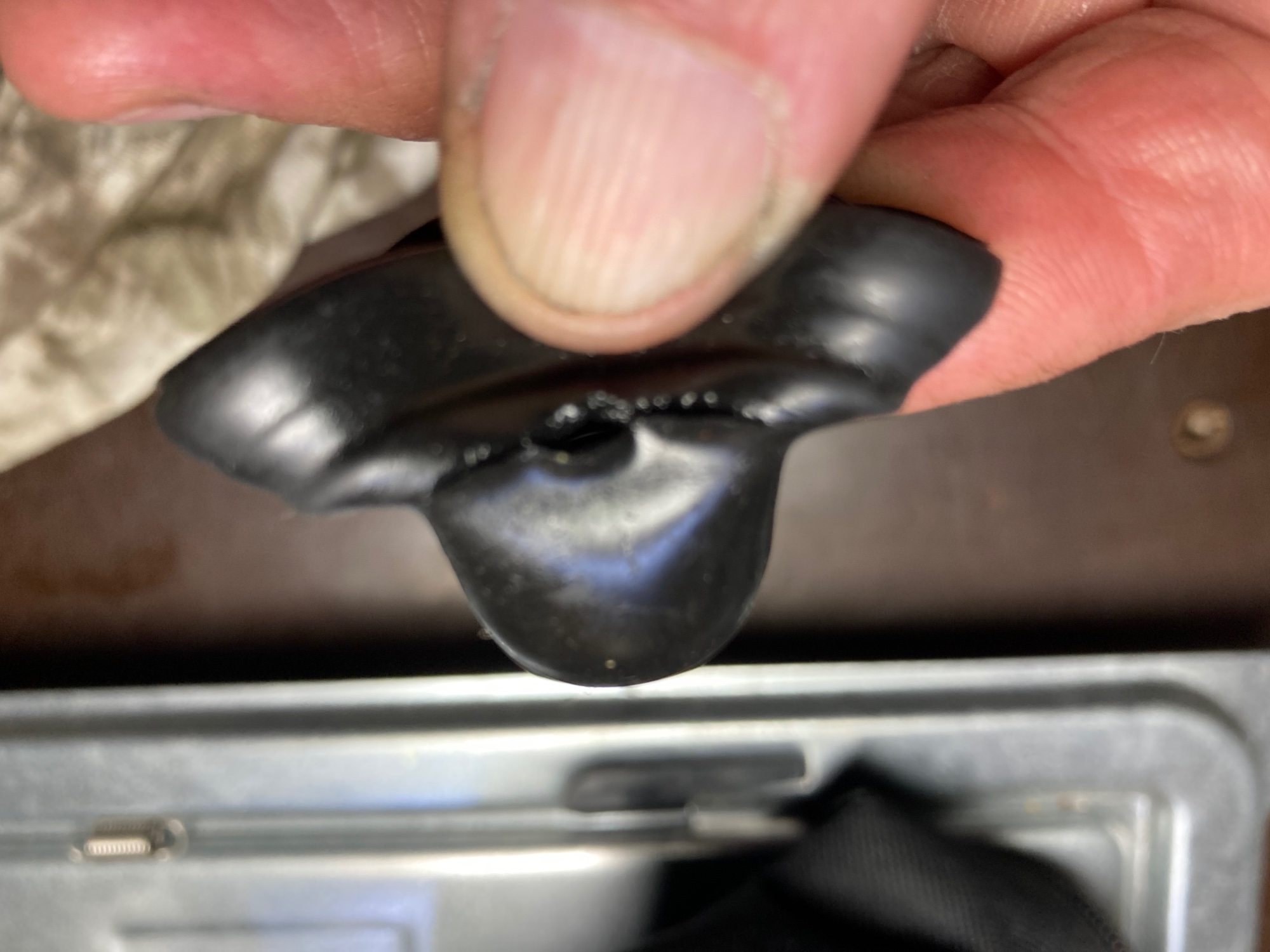 Nach dem Ausbau des Bremsventils und der Demontage der Gummikappe am Bremsventil entdeckte ich einen fast zwei Zentimeter langen Riß in der Gummikappe.