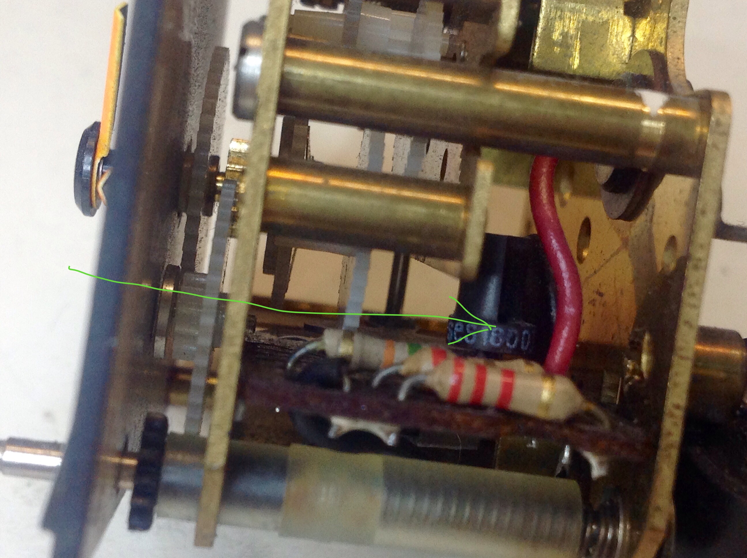 Wenn der Transistor defekt ist, läuft die Uhr aber gar nicht mehr, denke ich. Im Gegenzug heißt das für mich, dass der Transistor nicht das Problem ist. Bleibt ein verharztes Lager zusammen mit einer schlechten Masseverbindung? Gut, ich versuche nach Vlados Foto erstmal das verdächtige Lager zu finden.