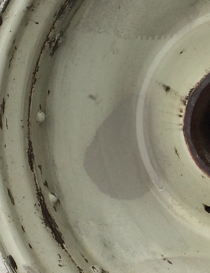 ich fragte weil ich eine Felge in scheinbar demselben grünstichigen Grau entdeckt habe, die wohl als Ersatzrad diente. Es ist die spätere Version der Zentralverschlussfelge ohne Schlitze. Ziemlich unbeschädigt und auch nicht nachlackiert. Mein Auto ist von 1964, demnach wären AC 136 und AC 102 möglich. Aber AC 136 ist es nicht.
