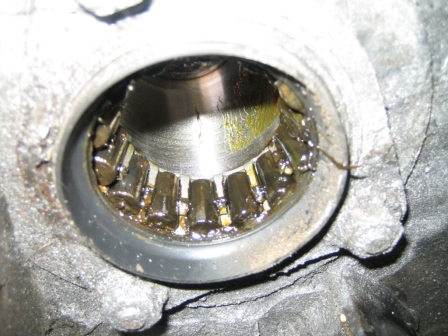 Auf der rechten Seite ging das ganz gut. Beim Rausdrücken der linken Seite musste ich so viel Kraft aufwenden, dass der Kasten, in dem das Auenlager sitzt, komplett zerdrückt und zerstört wurde. Ganz zum schluss habe ein paar Hammerschläge von Aussen dazu geführt, das das linken Auenlager auch los ging. Trotzdem war die rechte Aufnahme a. A..