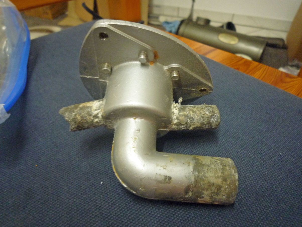 Wie man einwandfrei sehen kann, ist das Ventil im Inneren absolut einwandfrei und praktisch neuwertig. Die Außenseiten auf denen die Schläuche sitzen, sind hingegen total zerfressen. Hier drängt sich also der Verdacht auf, dass das Gummi der Kühlwasserschläuche eine zersetzende chemische Reaktion herbeiführt. Im nächsten Schritt erfolgte eine Reinigung mit Säure aus dem Kit "BLOCKMOTEUR" von Restom und anschließend der erste Anstrich mit "BLOCKMOTEUR"!