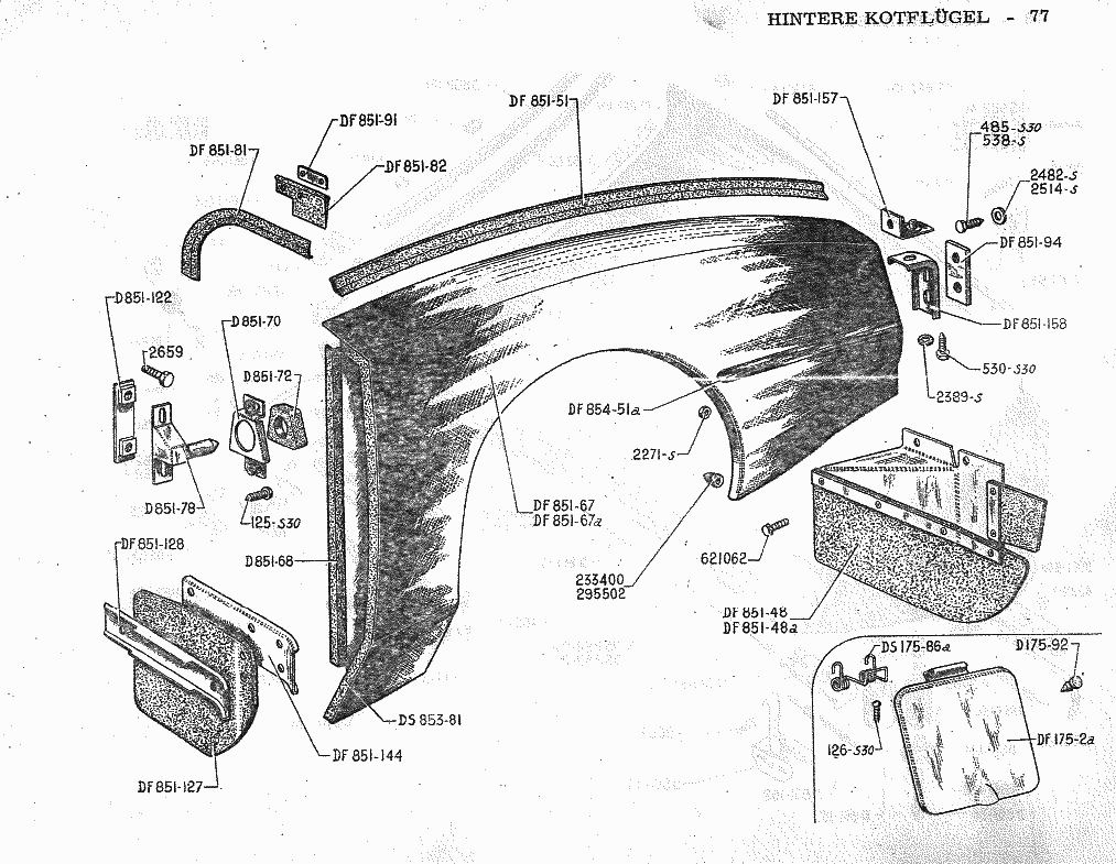 Was hier zunächst irritiert haben mag, ist der Umstand daß die Teilenummer auf dem Spritzlappen steht, den man ja eher unter DF 851-127 kennt