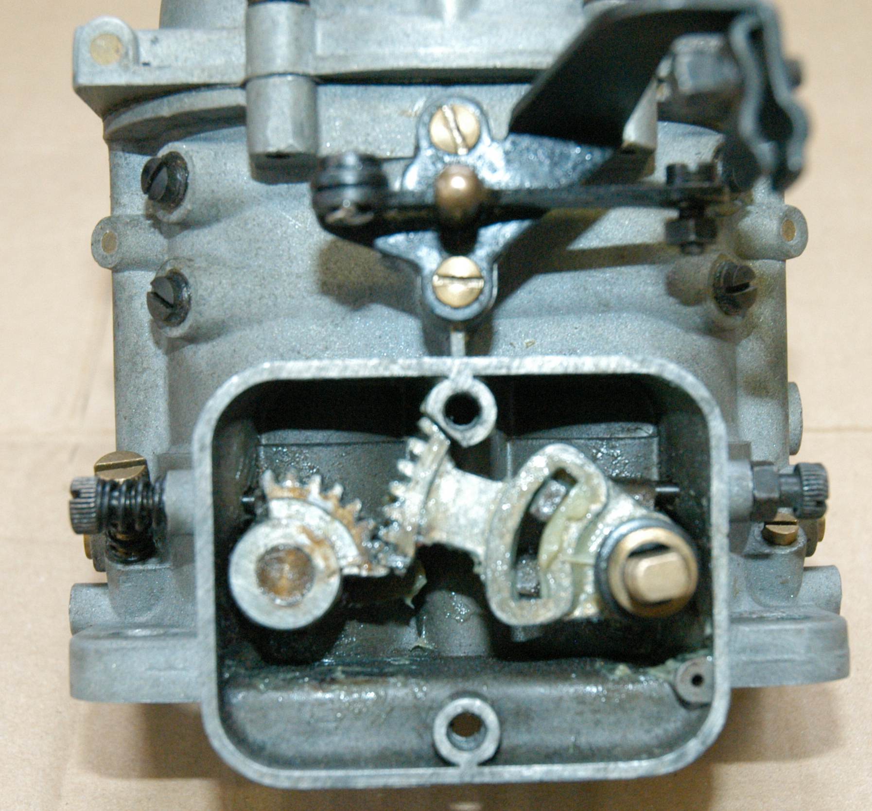 mein Vergaser wurde bei VGS überholt und ich denke, die wissen, was sie tun. Der Wagen lief damit sehr ordentlich. Ich habe ihn heute noch mal abgebaut und photographiert. Wie Du siehst, ist im Leerlauf die erste Stufe schon ein Stück weit geöffnet, sogar deutlich weiter als die zweite Stufe bei richtig eingestelltem Leerlauf.
