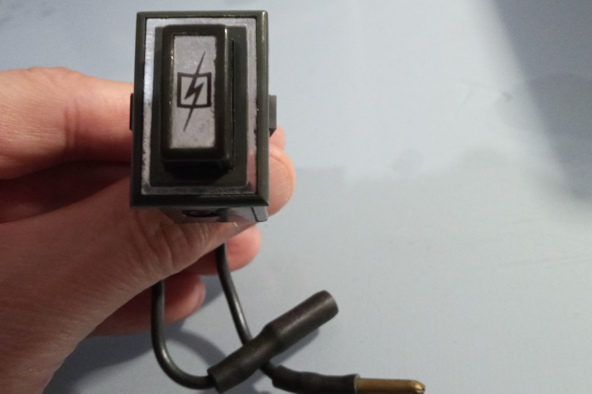 Tatsächlich unterscheiden sich der von Dir fotografierte Schalter für die heizbare Heckscheibe vom Schalter für die Modelljahre 1970-75 (vgl. Bild). Das Blitz-Symbol ab 1970 erscheint stilisierter, "eckiger".