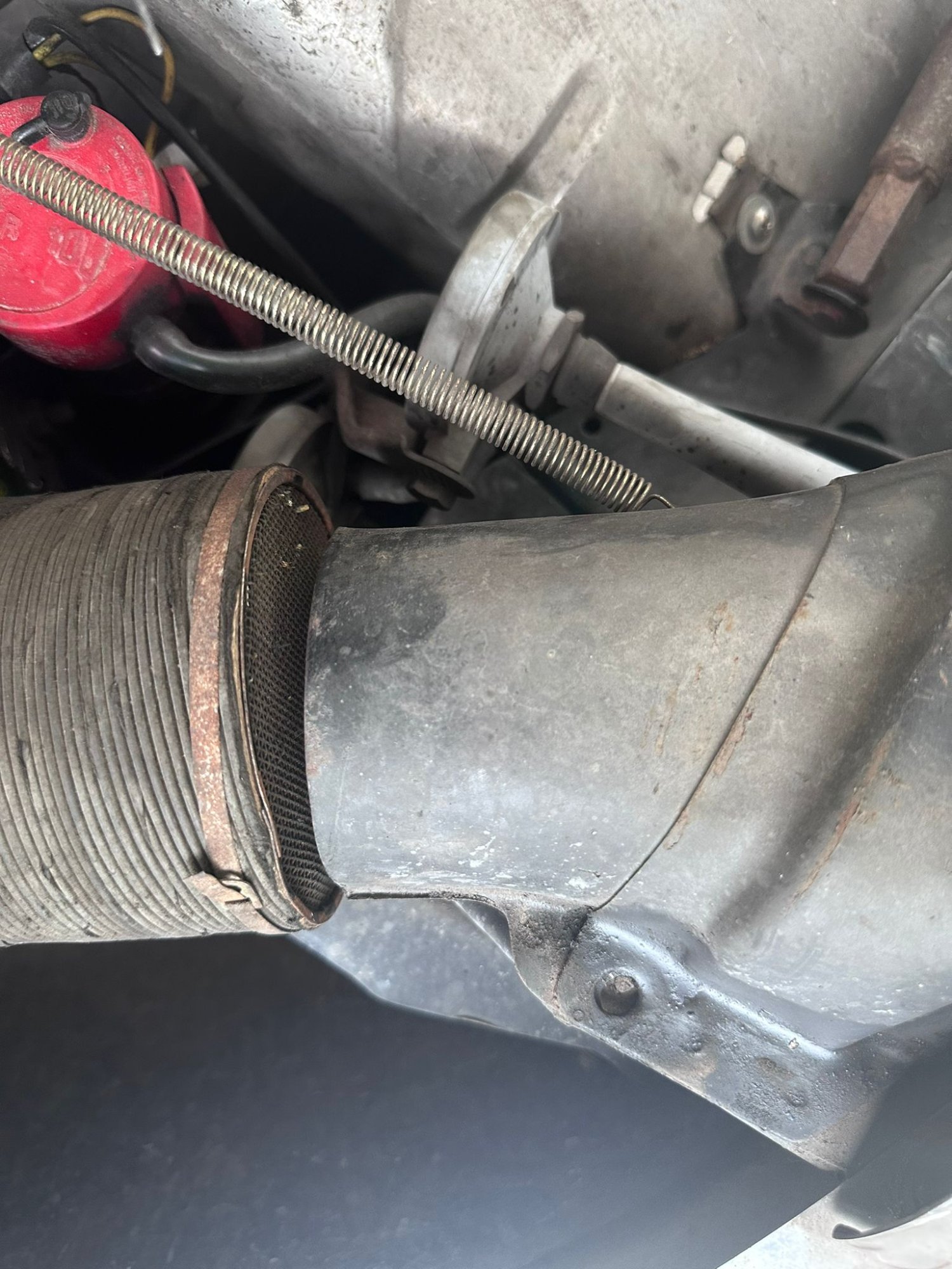 Auf der Fahrerseite hab ich das große 23ie -Gebläse, wo der Luftschlauch drin endet...