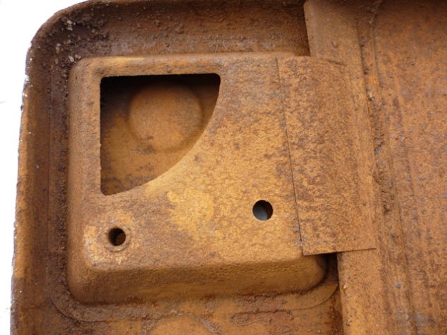 Bild 2 ist der Anblick von innen, welcher mich sehr erschreckt hat, da das Auto angeblich die letzten 10 Jahre in einer Halle gestanden haben soll. Es zeigte sich auch ein erheblicher Unterschied des Rostangriffs zwischen Bezin- und Luftbereich.