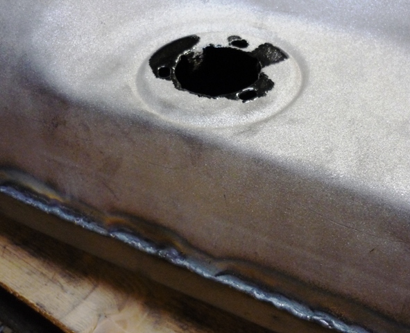 und 14 weitere Schweißbereiche, u. a. im Bereich Einfüllstutzen, welcher weich eingelötet ist !!! Da muß man vorm schweißen etwas Zinn entfernen und nachher prüfen, ob nichts undicht geworden ist. Hier aber ist alles dicht geblieben, da der Wärmeeintrag nicht so groß war und kaum Zinn entfernt wurde.