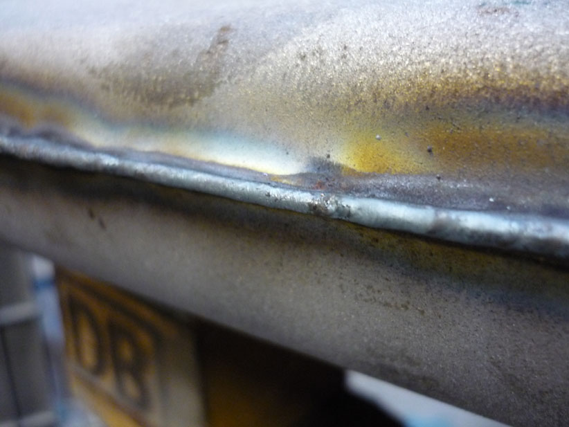 Bild 10 zeigt die Schweißnaht, welche ohne Drahtzugabe gelang, da die Bleche sauber aufeinanderlagen.