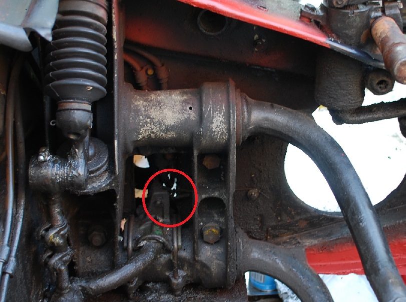 Das Rohr ist mit dem Auge an der vorderen Getriebetraverseschraube befestigt, unten mit einer Schelle an der oberen Schraube des Abdeckbleches, ich meine die Blechlasche mit zwei Schrauben ganz oben ist noch eine einzelne Fahne.
